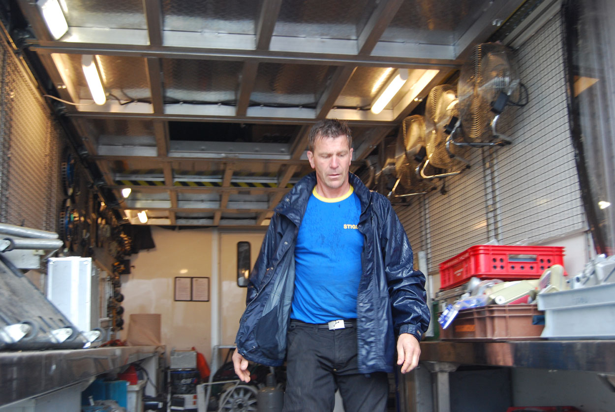 inne i verkstaden i trailern. |